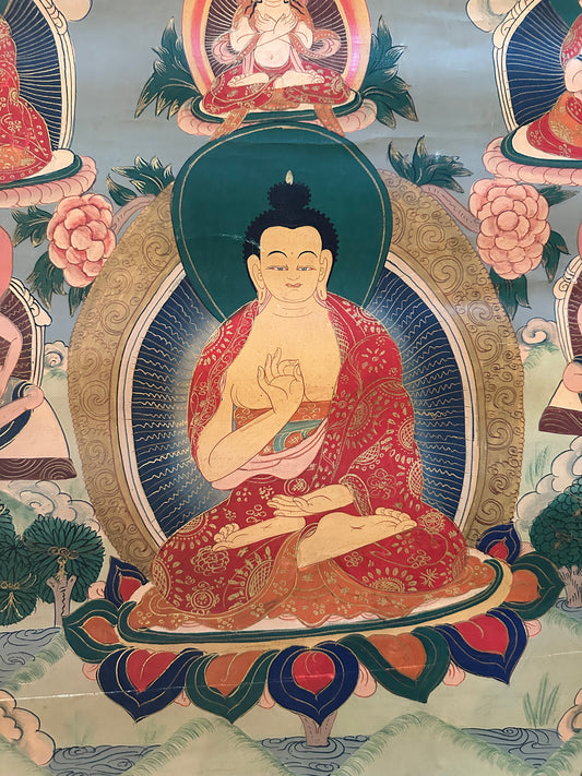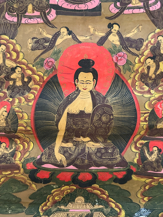 Thangka: Hand-painted Tibetan Thangka: Buddha in Red Robe