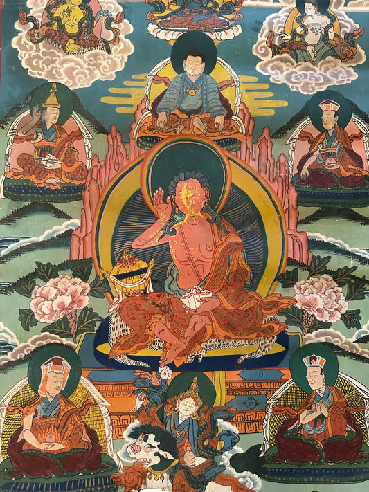 Thangka: Hand-painted Tibetan Thangka: Buddha in Orange Robe