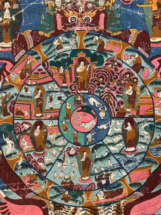 Thangka: Hand-painted Tibetan Thangka: Wheel of Life