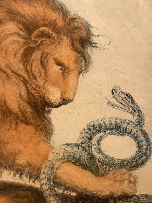Samuel William I Reynolds Color Mezzotint (after James Northcote): "Lion and Snake"