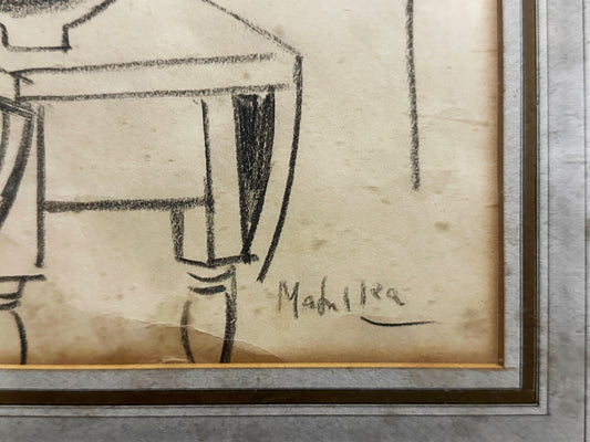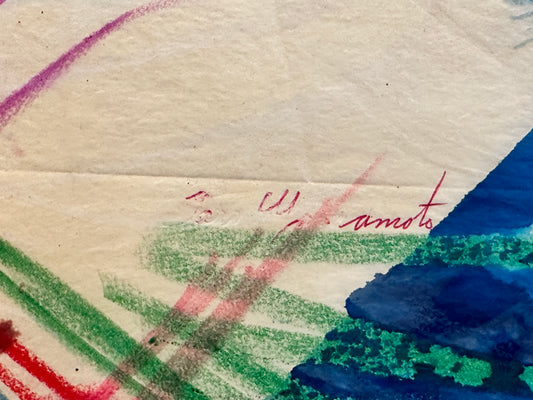Jan Matulka Crayon Drawing: Still Life - Flowers in a vase