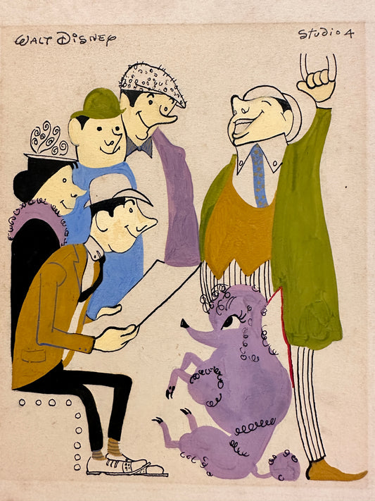Walt Disney Signed Drawing: Five People and a Purple Poodle
