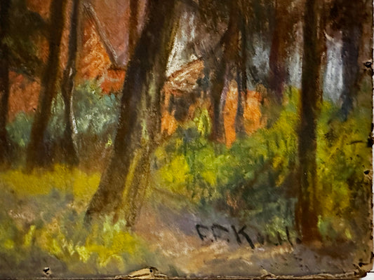 Friedrich Ferdinand Koch Pastel Drawing: Houses behind tall trees