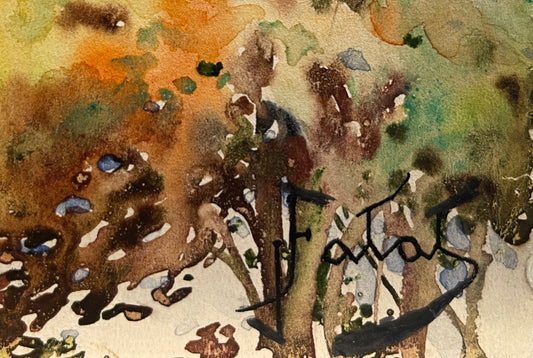 Julian Falat Signed Watercolor: "Autumn Trees and Mountainous background"