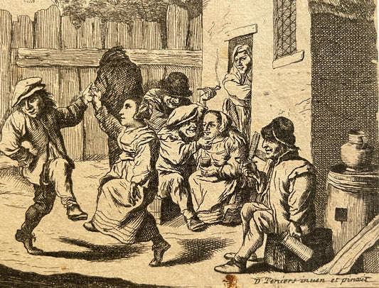 David Teniers the Younger Etching: Dancing and drinking in the evening