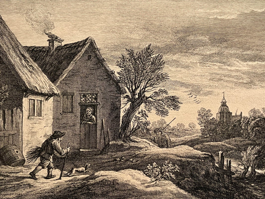 David Teniers the Younger Etching: Dutch peasants returning from the fields