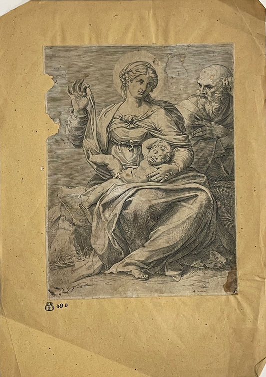 Annibale Carracci Engraving: Saint Mary and Saint Joseph with the Christ
