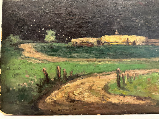 Alexei Harlamoff Oil Painting: Moonlit path in dark forest