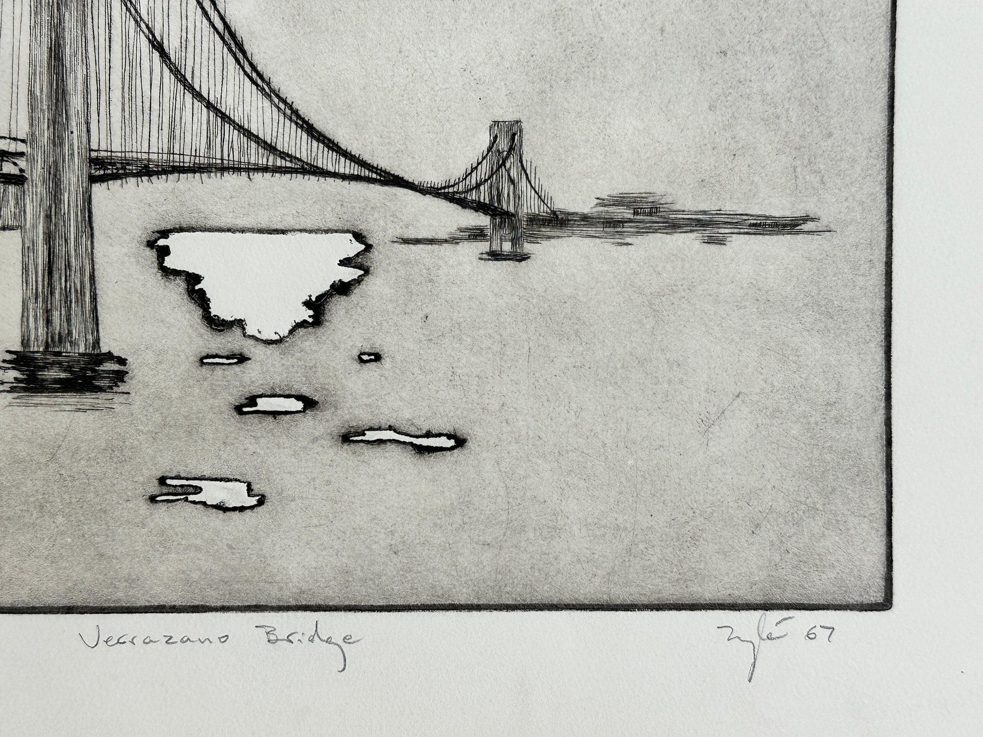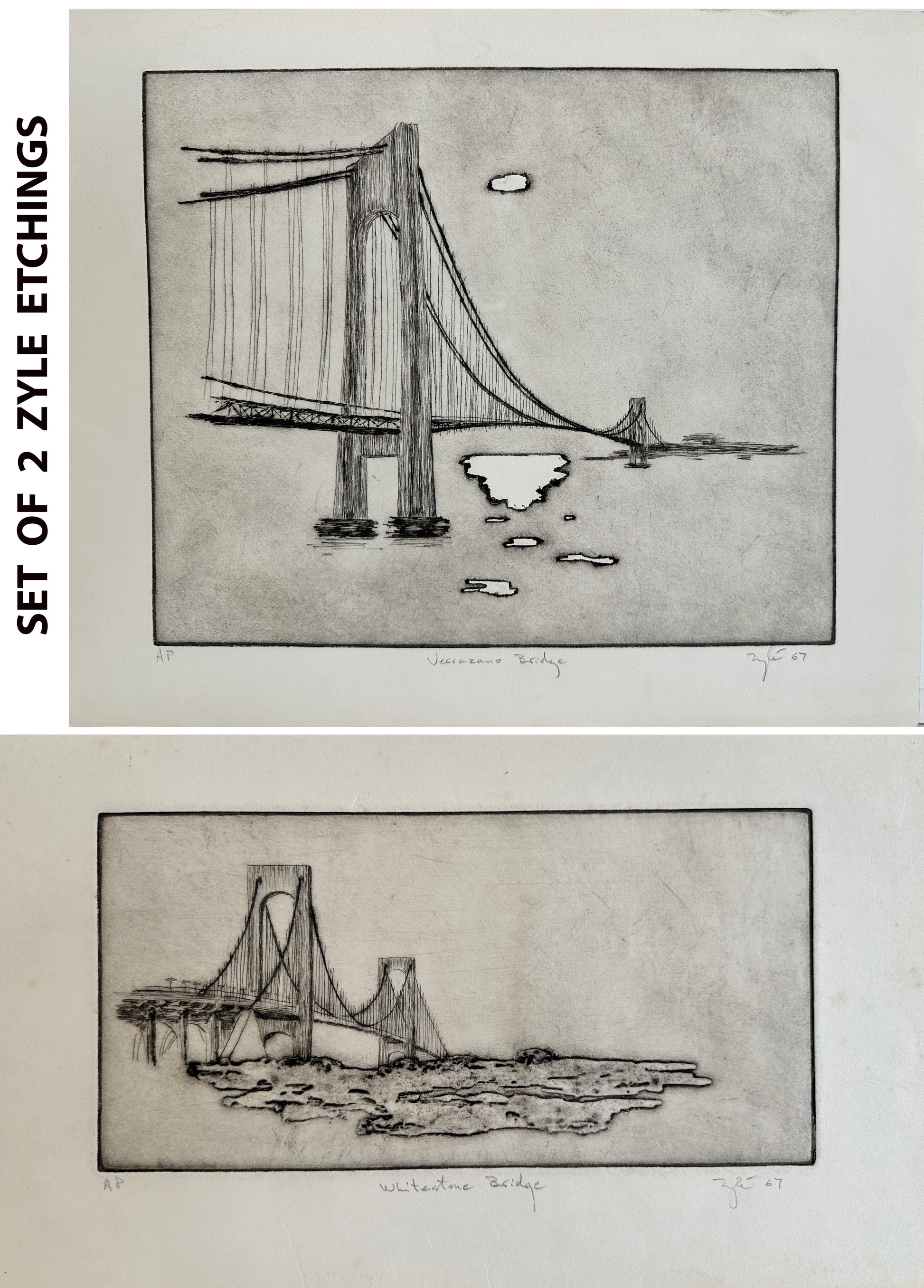 Set of 2 Zyle Etchings (AP): (1) Whitestone Bridge (2) Verrazzano Bridge